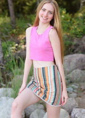Описание: Игриво избавившись от короткой маечки и юбки, симпатичная куколка оголила свои маленькие титьки и тут же принялась развратно позировать перед камерой всем телом. Рассевшись голышом на камне, бледная девица широко раздвинула рогатку и возбуждающе подставляет как можно ближе гладкую нежную писечку.
