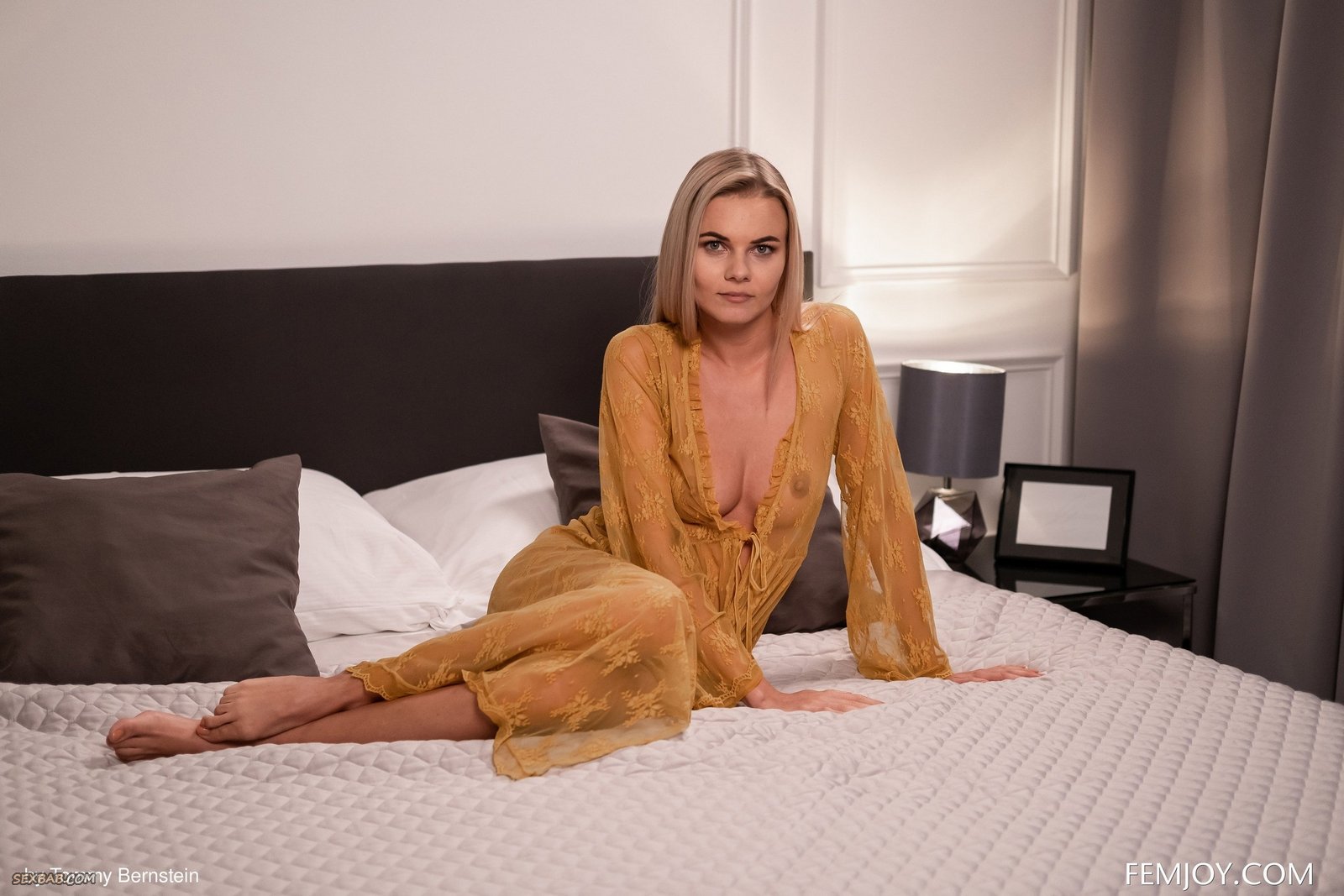 Соблазнительная дамочка снимает кружевной халатик
