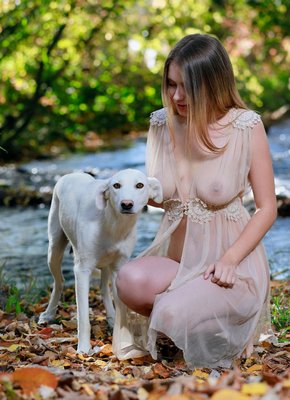 Описание: Легко скинув с себя прозрачное легкое платье, голая милашка вовсю светит своими сочными выдающимися прелестями в красивом осеннем лесу. Обнаженная детка страстно сжимает руками свои большие натуральные дойки, а затем похотливо выпячивает аппетитную мягкую попочку с бритой сладкой писей.