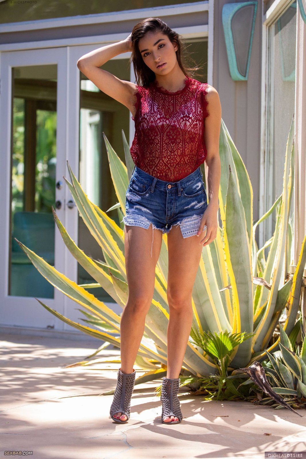 Описание: Решив порадовать нас соблазнительными снимками, молодая экзотическая красотка позирует перед камерой и снимает с себя короткие джинсовые шорты, а затем и белые трусики стринги. Оставшись совершенно голой, сексуальная брюнетка с плоскими сиськами устроилась на подушке и удивляя нас возможностями своего гибкого тела демонстрирует сладкую попку и бритую письку.