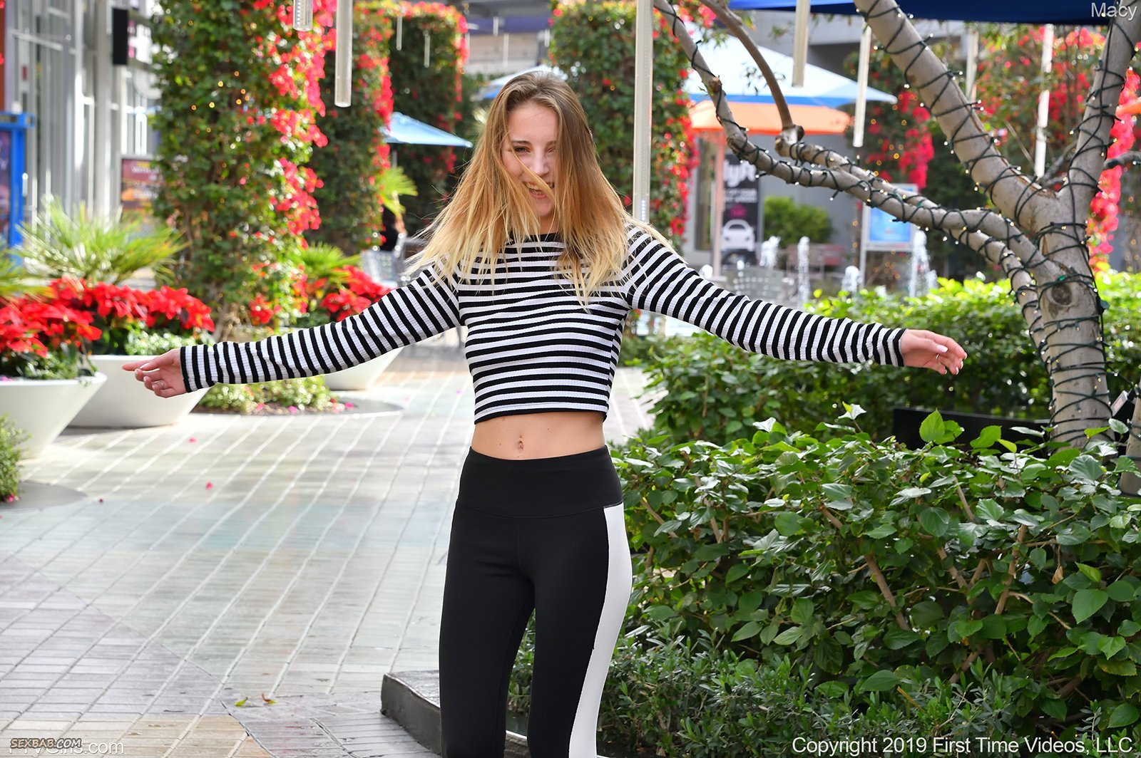 Описание: Весьма привлекательная молодая девица со светлыми локонами, будучи одета в лосины и кофточку, прогуливается на улице и в какой-то момент оголяет маленькую грудью. Ощущая при этом возбуждение, сексуальная стройняшка чередовала разные ракурсы и даже становилась на руки, раздвигая ноги.