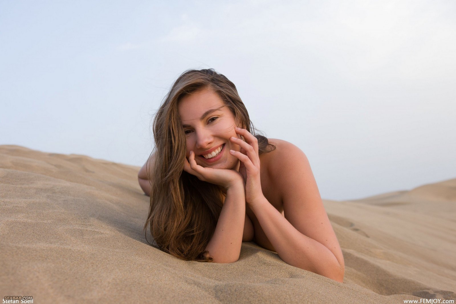 Описание: Изнывая от дикой жары, горячая штучка страстно позирует в огромной пустыне, развратно демонстрируя на камеру все свои выдающиеся прелести. Чувственно изгибаясь всем телом, сексуальная красотка с большими красивыми сиськами принимает разные эротичные позы на раскаленном песке.