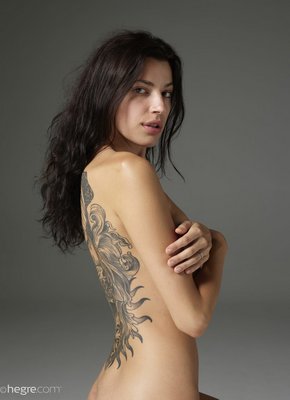 Описание: Обаятельная и полностью голая красивая украинка с длинными локонами и татуировкой на спине грациозно позирует и нежно обхватывает маленькие сиськи руками. В процессе порой располагаясь на полу, сексуальная стройняшка подробно делала акцент на бритой письке с гладким лобком и попке.