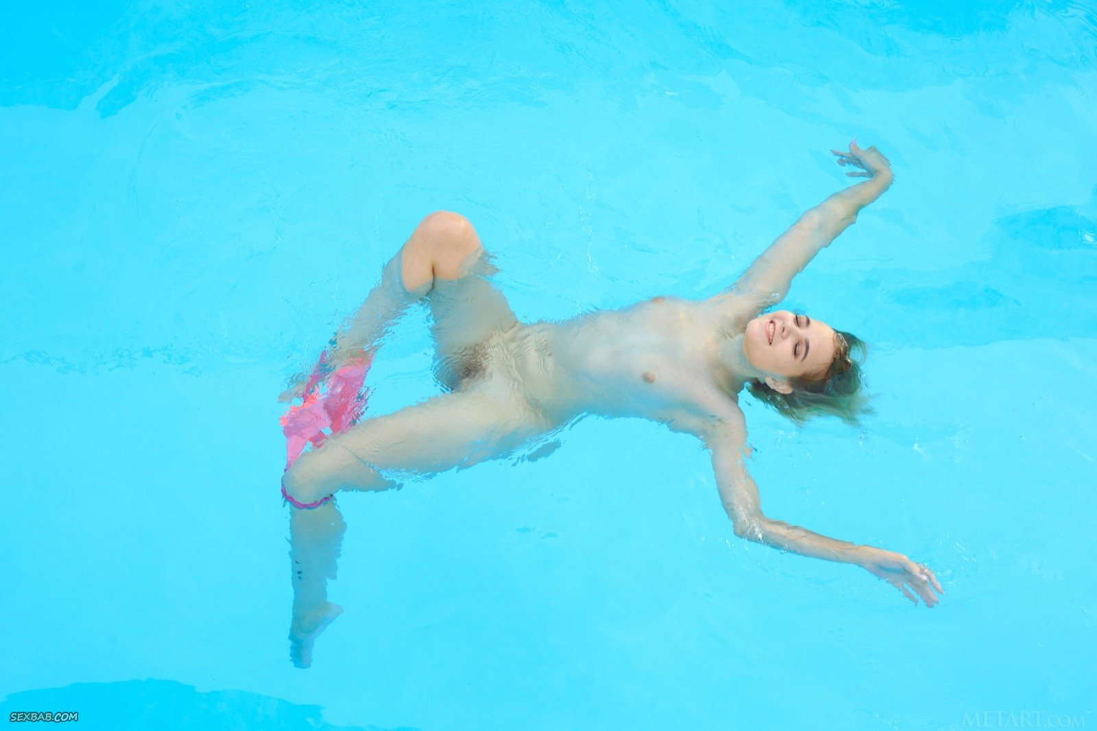 Описание: Заигрывая с фотографом, молодая блондинка скидывает с себя купальник и голая плавает в бассейне, ощущая на себе жаркие взгляды съёмочной группы. Выбравшись в дальнейшем из воды, сексуальная девушка с маленькой грудью продолжает позировать и получше демонстрирует свою сладкую попку с бритой киской.