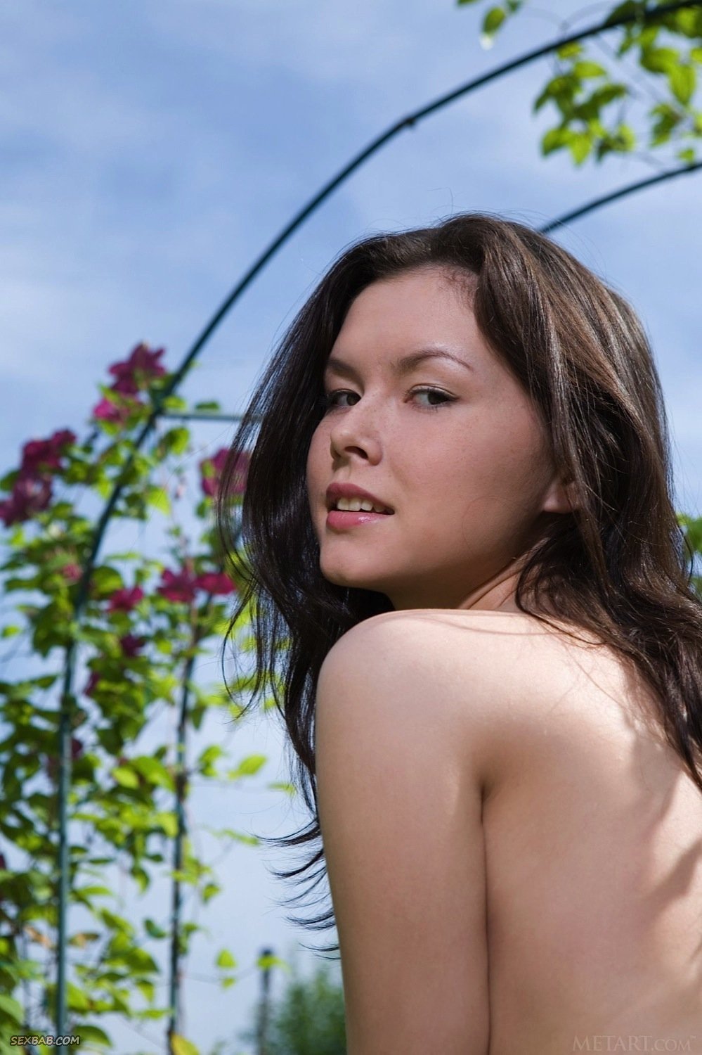 Описание: Не скованная скромностью, тощая брюнетка с длинными волосами и пушком на лобке соблазнительно красуется перед камерой и голая гуляет на даче, мило улыбаясь и порой присаживаясь на траву. При всём этом, молодая девушка с натуральными торчащими сиськами порой поглаживала себя руками, желая почувствовать ласку.