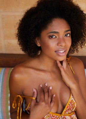 Описание: Располагаясь рядом с лавкой, а порой присаживаясь на нее, стройная негритянка с красивым телом и миловидной внешностью принимается медленно раздеваться, а оказавшись только в босоножках на высоком каблуке, она хвастается голым телом. Обнаженная чернокожая девушка с худенькой талией позволяет разглядеть её бритую письку с волосами на лобке и натуральную грудь.