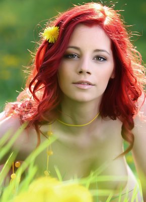 Описание: Страстная рыжая девушка красиво позирует абсолютно голой на природе, удобно устроившись в высокой траве. Яркая красотка с натуральными упругими титьками соблазнительно принимает разные откровенные позы, а затем похотливо начала подставлять свою аппетитную попку на камеру, демонстрируя крупным планом свою бритую сладкую киску с мохнатым лобком.