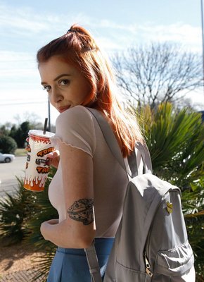 Описание: Надев наиболее короткую юбку и футболку, под которой не было лифчика, молодая рыжая шалунья отправляется на прогулку по городу. Наслаждаясь и даже немного возбуждаясь от происходящего, сексуальная стройняшка порой страстно сжимала натуральные сиськи с набрякшими сосками через одежду, а задирая подол показывала трусики.