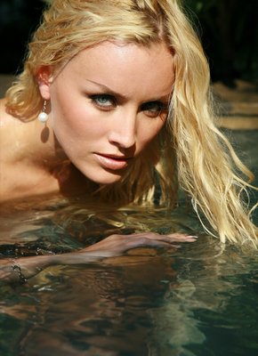 Тощая блондинка голая в бассейне