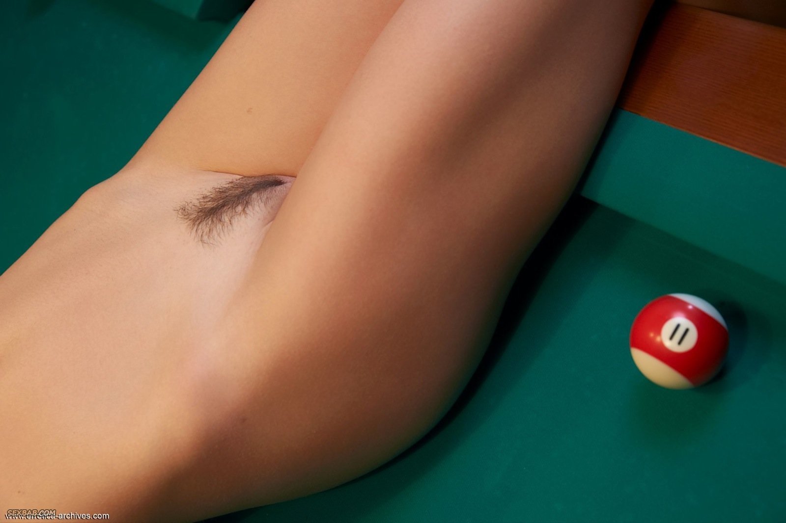Описание: Полностью голая и весьма сексуальная девушка в босоножках на высоком каблуке грациозно лежит на бильярдном столе. В процессе нежно поглаживая себя руками стройняшка подробно показывала маленькие сиськи с торчащими сосками и упругую задницу с бритыми половыми губами и волосиками на лобке.