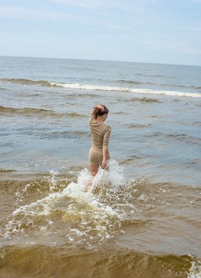 Описание: Наконец добравшись до моря, счастливая стройняшка прямо в платье заходит в воду и мочит свои трусики. Молодая девушка на березу снимает с себя всю одежду и греет свое загорелое влажное тело на солнце. Она ложится на теплый песок и без стеснения встает в самые провокационные позы, показывая крупным планом свою бритую киску.