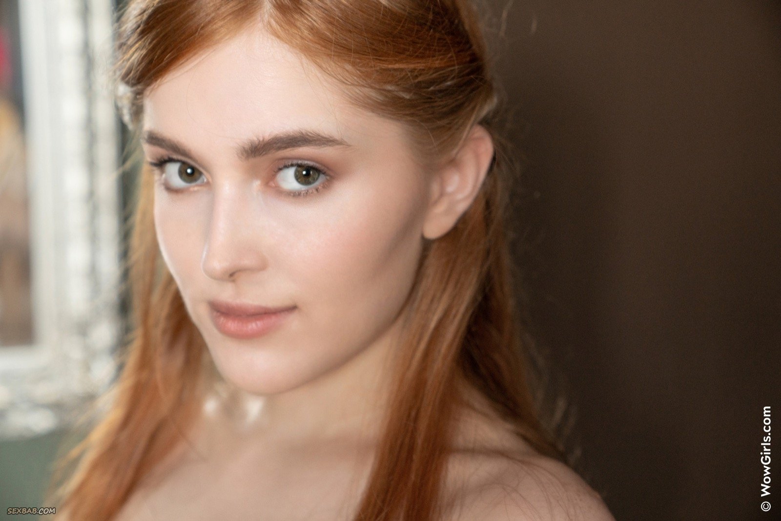 Рыжая девушка с плоскими сиськами разделась догола