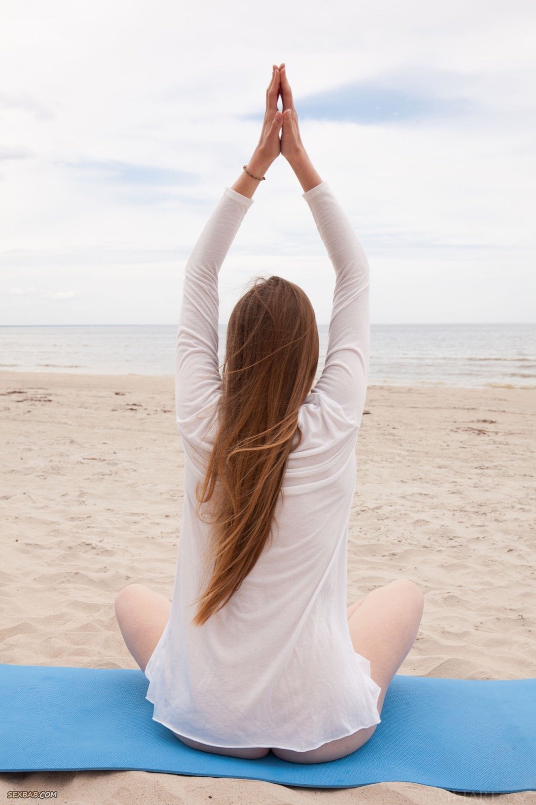 Описание: Накинув светлую кофточку на голое тело, молодая девка без трусиков начинает эротично позировать на пляже, в процессе прогибаясь раком и раздвигая промежность на каремате. Наслаждаясь, очаровательная милашка демонстрировала маленькие сиськи с подкаченной попочкой и возбуждающую гладенькую письку.