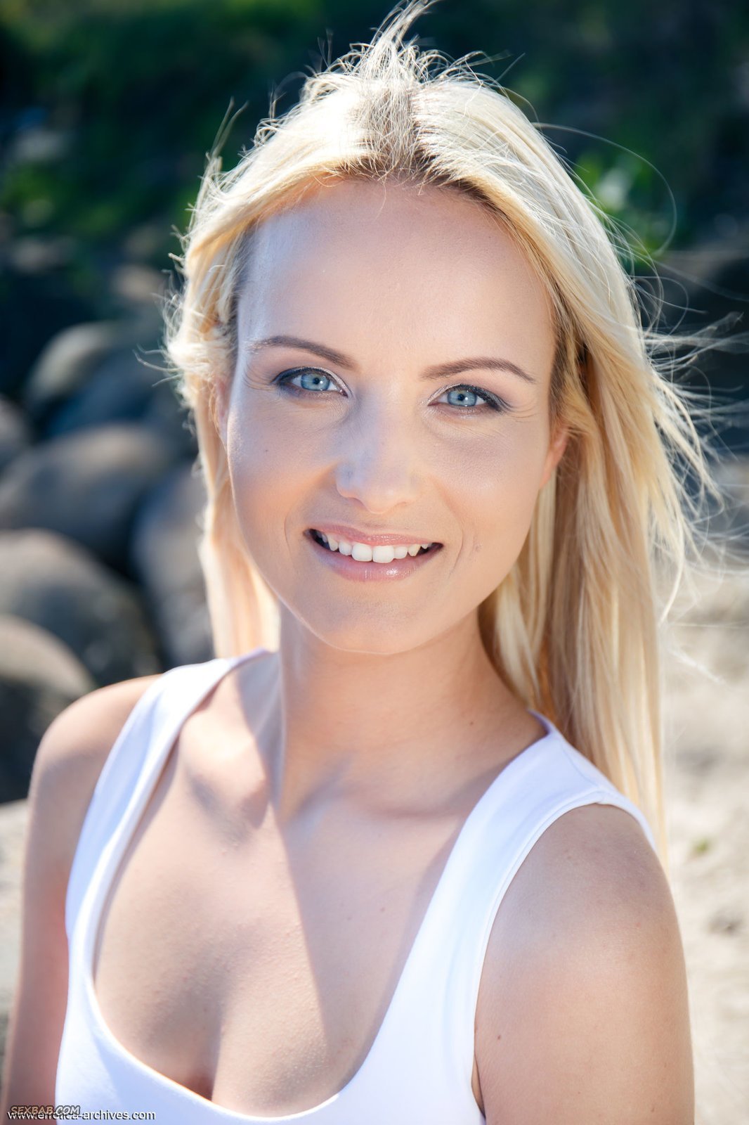 Описание: Мило улыбаясь, голубоглазая блондинка с пронзительным взглядом начинает эротично позировать в юбке и белой майке у речки, в процессе возбуждающе и медленно оголяясь. Уже спустя несколько минут очаровательная светловолосая девушка демонстрирует маленькие сиськи, а после гладко выбритую промежность с привлекательной писькой, в будущем чередуя разные позиции.