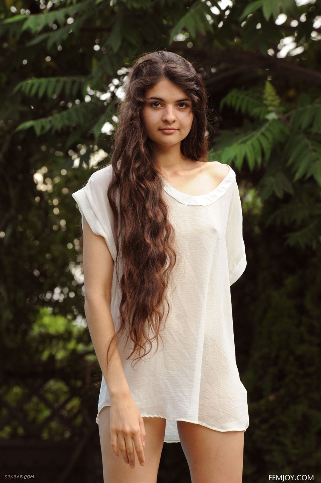 Описание: Накинув на голое тело белую футболку, длинноволосая милашка с маленькой грудью и голой писей купается в бассейне, между делом позируя перед фотографом с камерой. Нежась в воде, сексуальная девушка с большой радостью и возбуждением показывает нам бритую письку с интимной стрижкой на волосатом лобке, а так же красивую попку.