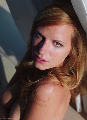 Описание: Устроив фото сессию в загородном доме, секси дамочка со светлыми волосами эротично позирует и медленно раздевается догола. Обнаженной милашка располагается на полу и поглаживая роскошные волосы руками, демонстрирует нам свои натуральные классные буфера с гладко выбритой писькой, а так же и другие прелести.