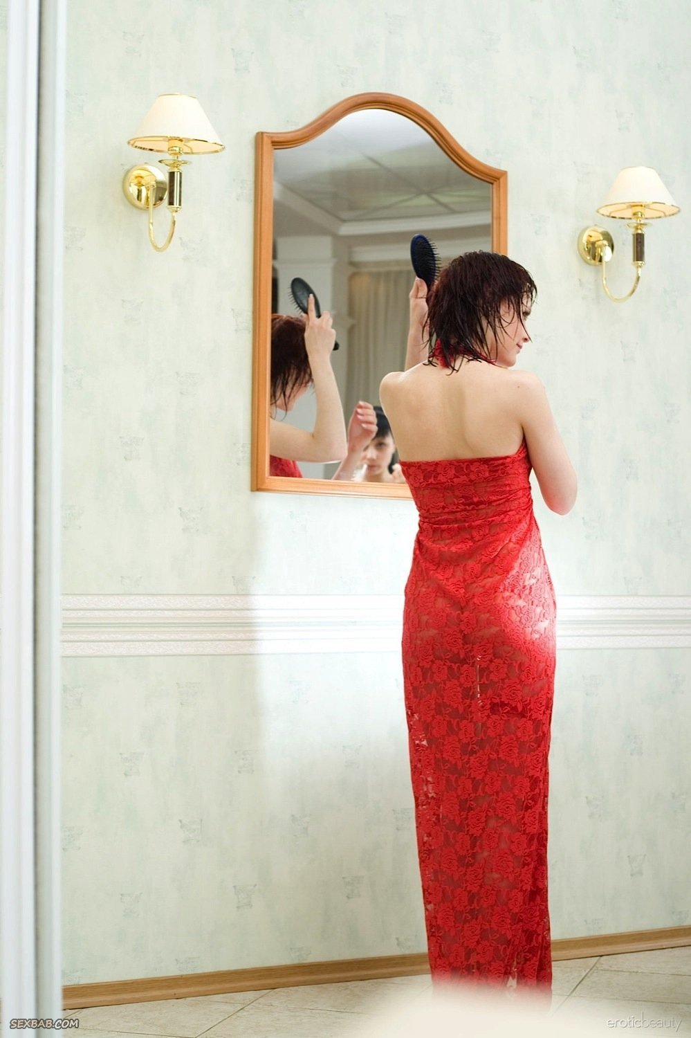 Описание: Приняв ванную и начав эротично позировать у зеркала, молодая голая девка с мокрыми волосами прикрывается красной кружевной тканью. Спустя пару мгновений, сексуальная шалунишка перебирается на кожаный диван и чередуя разные ракурсы акцентирует внимание на маленьких сиськах и возбуждающей бритой письке.