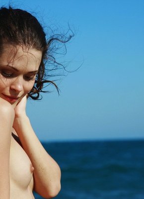 Описание: Позируя перед фотокамерой на берегу чёрного моря, сексуальная и абсолютно голая девушка с худенькой фигурой испытывала сильное возбуждение, и закрывала глаза от яркого солнца. В разных ракурсах стройняшка демонстрировала маленькие сиськи, параллельно поглаживая их руками, и гладко выбритую письку с упругой задницей.
