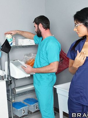 Давно облизываясь на молоденькую медсестру в очках, бородатый анестезиолог решил использовать удачный шанс и усыпил пациента. Оставшись в относительном уединении, парочка предалась разврату прямо у спящего больного, трахаясь как кролики.