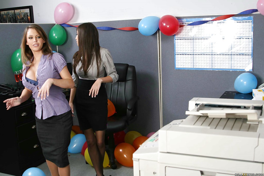 Оставшись на работе, чтобы приготовить помещение к вечеринке, ненасытные потаскушки оторвались по-взрослому. Сначала шалили, делая копии своих сисек и попок, потом добрались до сексуальных шалостей и не просто ублажили друг дружку вибратором, Jenna Presley and April O'Neil устроили полноценную лесби оргию.