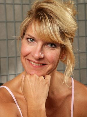 Светловолосая зрелая тетенька решила порезвиться на черном диванчике. Ее маечка и трусики совсем ничего не скрывают, но заводная милфа натянула ткань сильнее и показала свою девочку. А разгорячившись, она разделась совсем и приступила к самоублажению.